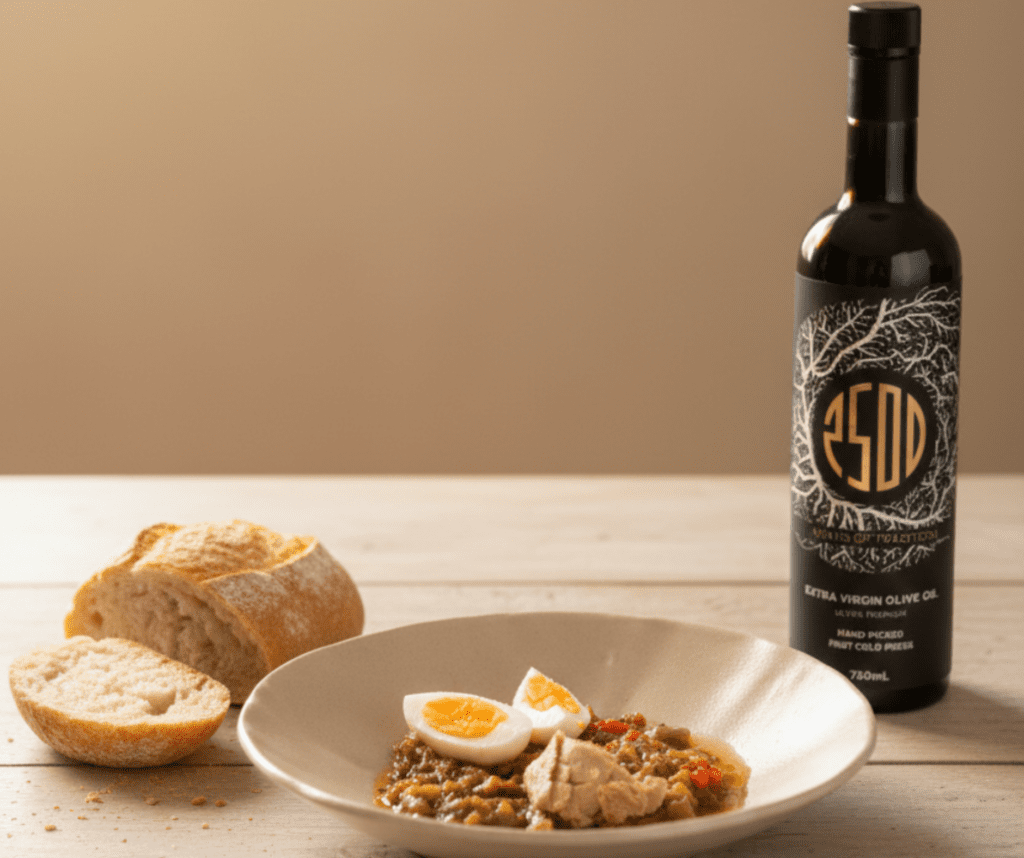 Slata Mechouia is technically a simple dish, which means there is nowhere for poor ingredients to hide. The robust polyphenols in our Chetoui variety cut through the richness of the egg and tuna, while harmonizing with the spicy heat of the peppers. It doesn’t just dress the salad; it completes it.